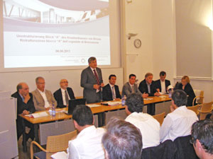 Mussner ging zunächst auf das Breitbandprojekt des Landesbautenressorts ein. Dieses sieht vor, dass bis Ende 2013 alle Südtiroler Gemeinden an das Glasfaserkabelnetz angeschlossen sein sollen. Da es nicht möglich ist, sofort jeden einzelnen Haushalt mit Glasfaserkabel zu verbinden, soll der Anschluss der einzelnen Haushalte über Zentralen erfolgen. Dazu müssen diese jedoch von der Telecom an die Breitbandtechnologie angepasst werden. Das Land ist diesbezüglich mit der Telecom in Verhandlungen. Die Glasfaserverbindung für die öffentlichen Einrichtungen wie Gemeindehäuser, Schulen, Gesundheitssprengel usw. hingegen übernimmt das Land. "Wir sind aber auch auf eine gute Zusammenarbeit mit den Gemeinden angewiesen. Dann können Tiefbauprojekte der Gemeinden mit unseren Projekten zur Verlegung der Leerrohre im Voraus aufeinander abgestimmt und viel Zeit und Geld gespart werden", unterstrich Landesrat Mussner.