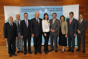 LPA - Mit der Verabschiedung einer Resolution zur "Makroregion Alpenraum", der Vergabe des Arge-Alp-Preises 2011 für erneuerbare Energien und der Übergabe des Vorsitzes vom Land Salzburg an St. Gallen ist heute (1. Juli) in Zell am See die 42. Konferenz der Regierungschefs der Arbeitsgemeinschaft Alpenländer (Arge Alp) zu Ende gegangen. Für Südtirol nahm Landeshauptmann Luis Durnwalder an der Regierungschefskonferenz teil.