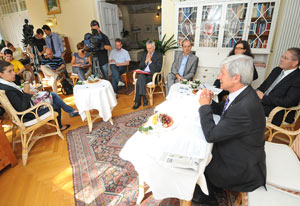 Landesrat Hans Berger und seine engsten Mitarbeiter beim Halbzeitgespräch mit den Journalisten.