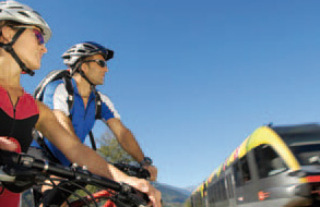 „Nach dem erfolgreichen Start im Vinschgau sind wir dabei, gemeinsam mit mehreren Anbietern ein landesweites Netz von Radverleihstellen aufzubauen, sodass möglichst flächendeckend eine kombinierte Nutzung von öffentlichen Verkehrsmitteln, speziell der Bahn, und Leihfahrrädern möglich ist“, erklärt Landesrat Widmann. Mit diesem System erübrige sich der Transport von Fahrrädern in öffentlichen Verkehrsmitteln, so der Landesrat. „Solange sich der Andrang in Grenzen hält, ist der Fahrradtransport auf den Zügen kein Problem“, sagt Widmann. Bei größeren Gruppen oder – wie in diesen Tagen - bei einem regelrechten Ansturm von Radfahrern kommt es zu Überfüllung der Züge und der Bahnhöfe. Das Auf- und Abladen einer Vielzahl von Rädern auf den Bahnhöfen sei nicht nur ein zeitliches, sondern auch ein sicherheitstechnisches Problem, erklärt Widmann. Zudem ist der gesamte Bahnverkehr in Südtirol in erster Linie für den Personentransport, sprich für die Bedürfnisse der Berufspendler und Schüler konzipiert mit minutiös abgestimmten Fahrplänen und Anschlussverbindungen. Gerade in diesen Tagen, so Widmann, möchte er den Radbegeisterten die bikemobil Card sehr ans Herz legen, zumal man damit unbeschwert den Ausflug mit Bahn und Rad genießen könne, ohne sich um den Radtransport kümmern zu müssen.