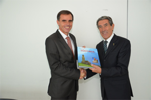 Als Gastgeschenk bekam Bresciani von LR Theiner Lesestoff über Südtirol (FOTO:LPA)