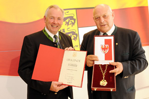 Den Kärntner Landesorden in Gold, die höchste Auszeichnung, die das Bundesland zu vergeben hat, hat Landeshauptmann Luis Durnwalder heute (27. September) in Klagenfurt aus den Händen seines Amtskollegen Gerhard Dörfler entgegen nehmen können. Vor der Verleihung stand ein Treffen mit Vertretern der slowenischen Minderheit in Kärnten auf dem Besuchsprogramm des Landeshauptmanns.
