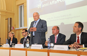 Nach der Begrüßung durch Landeshauptmann Luis Durnwalder beleuchtete die Boznerin Sibylle Seyr vom Juristischen Dienst des Europäischen Parlaments in Luxemburg die Aufgaben und die Arbeitsweise des Gerichtshofes der Europäischen Union (EUGH). Walter Obwexer, Professor am Institut für Europarecht und Völkerrecht der Universität Innsbruck, ging auf die Verbindungen zwischen Südtiroler Autonomie und Europäischer Union ein, während Klaus-Dieter Borchardt, Direktor in der Generaldirektion Landwirtschaft der Europäischen Kommission, zum Thema "Die Europäische Union als Rechts- und Wertegemeinschaft" referierte.