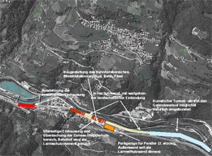 Das nun gutgeheißene Programm sieht vor, dass der Zulauf im Bereich des Schönauer Hofes vollständig eingehaust wird. "Das heißt, dass die Bestandsstrecke und das dann notwendige Verknüpfungsgleis in einen künstlichen Tunnel verlegt werden", erklärt Laimer. Unterhalb des Schönauer Hofes werden zudem Lärmschutzwände aus Steindrahtkästen errichtet, die so weit als möglich in das Gelände eingebunden werden. "Damit lassen sich die Folgen für das Landschaftsbild mildern", so der Landesrat. Neben Tunnel und Lärmschutzwänden sieht das Programm auch die Überdachung des gesamten Waidbrucker Bahnhofsareals vor. An der Eisack-Seite wird zudem auch seitlich für den notwendigen Lärmschutz gesorgt, damit die westliche Talseite effizient geschützt sein wird.