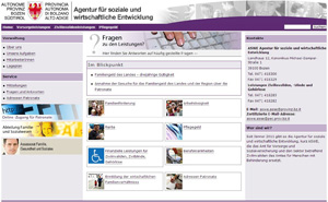 Das Portal ist auch erreichbar über die Webseite der Abteilung Familie und Sozialwesen www.provinz.bz.it/sozialwesen. Die ASWE ersetzt das Landesamt für Vorsorge und Sozialversicherung und den Sektor betreffend Zivilinvaliden des Landesamtes für Menschen mit Behinderung.