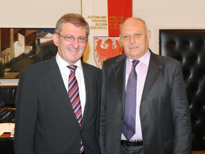 LPA - Erneuerbare Energie, Makroregion Alpenraum, Interreg-Projekte: Diese Themen waren Gegenstand des heutigen (7. November) Besuchs des Salzburger Landesrats für Wohnbauförderung, Raumordnung, Umwelt- und Verbraucherschutz Walter Blachfellner bei LH Luis Durnwalder im Palais Widmann in Bozen.