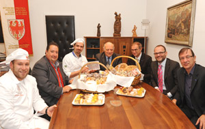 LPA - Einen nicht alltäglichen Besuch erhielt Landeshauptmann Luis Durnwalder heute vormittag (7. Dezember) in seinem Büro im Palais Widmann: Die Bäckerinnung im Handels- und Dienstleistungsverband Südtirol (hds) brachte ihm nicht nur nicht nur eine Kostprobe ihres Könnens, sondern auch die neue "Beckn-Entschuldigungskarte".