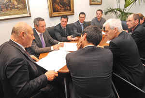 Beim Treffen mit LH Luis Durnwalder anwesend waren: Arno Kompatscher, Präsident des Gemeindenverbands, Peter Gasser, Präsident Bezirksgemeinschaft Eisacktal, Alois Peter Kröll, Präsident Bezirksgemeinschaft Burggrafenamt, Andreas Tappeiner, Präsident Bezirksgemeinschaft Vinschgau, Armin Holzer, Präsident Bezirksgemeinschaft Wipptal, Roland Griessmair, Präsident Bezirksgemeinschaft Pustertal, Albin Kofler, Präsident Bezirksgemeinschaft Salten-Schlern und Josef Kalser, Generalsekretär Bezirksgemeinschaft Salten-Schlern.
