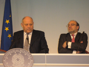 Improvisierte Pressekonferenz im Pressesaal des Chigi-Palasts: Die beiden LH Durnwalder und Dellai