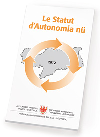 Pünktlich zum 40. Geburtstag des Autonomiestatut erscheint jetzt eine neue und erweiterte Fassung der Publikation „Das Autonomiestatut“ in ladinischer Sprache. War in der bisherigen Ausgabe nur der Text des Pariser Vertrages und des Statutes von 1972 abgedruckt, sind in der nun ergänzten Auflage u.a. auch alle Durchführungsbestimmungen aufgelistet.