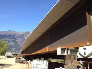 Wegen Hochwassergefahr waren die Arbeiten am Flussbett der Etsch im vergangenen Sommer bis Ende November 2011 eingestellt werden. Damals stand die Ausführung des letzten Brückenauflagers als Konsole am bestehenen Viaduktpfeiler an, der mitten im Flussbett steht. Mittlerweile wurde eine Piste mit Brücke über die Etsch errichtet, um den Pfleiler zu erreichen. Anschließend wurden die Konsole ausgeführt und das Tragwek aus Stahlschweißträgern eingebaut. "Derzeit wird an der darauf liegenden Stahlbetonbrückenplatte gearbeitet, die am Freitag, 13. April betoniert werden soll", erklärt Ingenieur Günther Kiem, Direktor im Landesamt für Straßenbau West.
