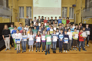 Die jeweils fünf Bestplatzierten der insgesamt elf Kategorien wurden heute durch Schulamtsleiter Peter Höllrigl mit einem Diplom und Buchpreis ausgezeichnet. Dabei rief der Schulamtsleiter die Mathematiktalente auf, auch ihre Mitschüler mit dem Virus der Mathematik anzustecken.