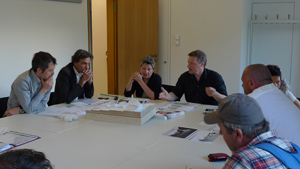 Bei der Folgeberatung Pufels: ( v.li.) Projektant Arch. Hannes Mahlknecht, Arch. Sergio Pascolo, Arch.in Sonja Gasparin, Arch. Dieter Jüngling.