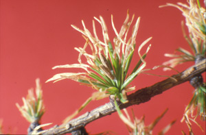 In Südtirol weisen derzeit ganze Lärchenbestände ein herbstliches Aussehen auf. "Kein Grund zur Sorge", beschwichtigt der Amtsdirektor Minerbi, "die gelbliche Verfärbung ist lediglich auf einen kleinen Schmetterling zurückzuführen, dessen Larve keinen bleibenden Schaden anrichtet".