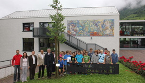 Nun wurden den Gewinnern der Schätzwettbewerbe "lebendige" Preise überreicht: Beide Schulen schmücken sich jetzt mit jeweils einem Ginkgobaum, den die Trauttmansdorffer Gärtner speziell zu diesem Anlass in den Schulhöfen gepflanzt haben.