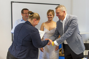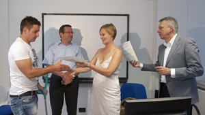 Dieser zwölfte Arbeits-Integrationskurs hat den Schwerpunkt auf die Ausbildung in Informatik im Bereich Verwaltung gelegt. Die erlangten Fachkompetenzen werden den Kursteilnehmern durch ein "Kompetenzbüchlein" bescheinigt, das Arbeitslandesrat Roberto Bizzo bei der heutigen Diplomfeier den fünf Absolventinnen und fünf Absolventen überreicht hat. "Ich hoffe," hob Landesrat Bizzo bei der Diplomverleihung hervor, "dass dieser ESF-Kurs den Absolventinnen und Absolventen hilft, den Arbeitseinstieg zu schaffen und ihre Fähigkeiten zur Geltung zu bringen." Anwesend war auch ESF-Amtsdirektorin Judith Notdurfter.