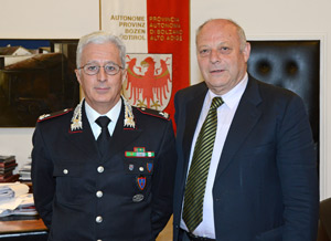 LPA - Fragen der öffentlichen Ordnung sowie der Organisation und der rechtlichen Stellung der Carabinieri hat Landeshauptmann heute Vormittag (19. Juli) mit Brigadegeneral Nedo Lavagi erörtert. Der Vize-Kommandant des auch für Südtirol zuständigen interregionalen Carabinieri-Kommandos "Vittorio Veneto" stattete dem Landeshauptmann einen Höflichkeitsbesuch ab.