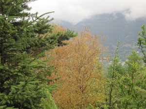 Zwei weitere Schädlinge, erklärt das Forstinspektorat Schlanders, sind noch erwähnenswert: Die Kastaniengallwespe (Dryocosmus kuriphilus) hat sich stark ausgebreitet und das ganze Gebiet der Edelkastanie befallen. Auf der Schattseite des Vinschgaus verleiht heuer ein Pilz - die Marssonina-Blattfleckenkrankheit - vor allem den Birken bereits jetzt eine Herbstfärbung.