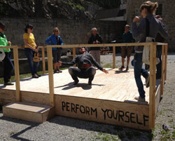 "Perform yourself" ist das Kunst- bzw. Vermittlungsprojekt von Hannes Egger. Am Eingang der Festung werden Anleitungen zur Bewegung in der Ausstellung verteilt, welchen den Besuchenden eine körperliche Auseinandersetzung suggerieren. Die Tänzerin Martina Marini schafft unter dem Titel "Kunst bewegt" in einem Tanz-Workshop Begegnungen mit der Akustik verschiedener Kunstwerke. Martina Marini hat für ihre Intervention fünf Kunstwerke ausgewählt, zu denen je ca. 45 Minuten gearbeitet wird. Für den Workshop sind keine Vorkenntnisse im Bereich des Tanzes notwendig. .