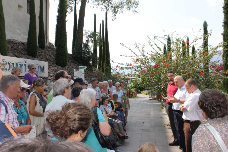 Einen ganz besonderen und vor allem barrierefreien Tag konnten über 200 Menschen mit Behinderung aus allen Landesteilen heute in den Gärten von Schloss Trauttmansdorff und im Touriseum, dem Landesmuseum für Tourismus im Schloss Trauttmansdorff, verbringen. Organisiert wurde der Tag der offenen Tür heuer bereits zum fünften Mal in Zusammenarbeit mit dem Dachverband der Sozialverbände Südtirols, seinen Mitgliedsorganisationen sowie dem Verband der Altenheime Südtirols. Rund 230 Menschen mit Behinderung, viele davon begleitet von Betreuungspersonen, nahmen diesen Tag zum Anlass, um die Natur zu erleben und auch den Landeshauptmann persönlich kennen zu lernen.