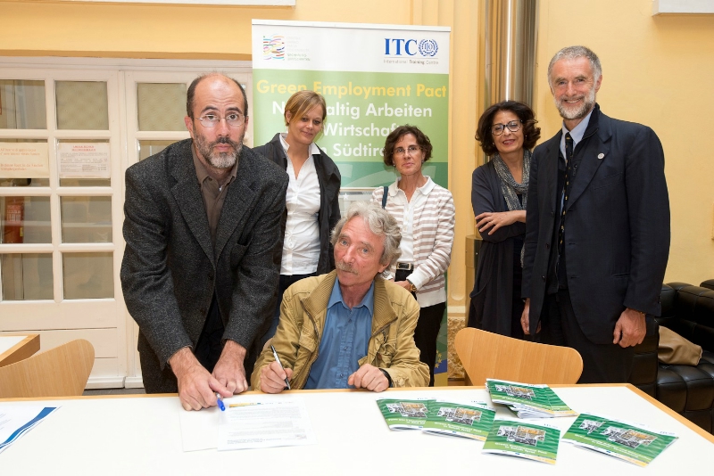 Green Employment Pact unterzeichnet (v.li.) Giulio Angelucci, Judith Notdurfter, Anton Auer, Cinzia Del Rio, Jeannette Shalabi, Enrico Tezza.