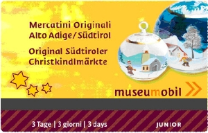 LPA - Mit der "Museumobil Card" kann man an drei bzw. sieben aufeinander folgenden Tagen mit allen öffentlichen Verkehrsmitteln in Südtirol unbegrenzt fahren und rund 80 Museen und Sammlungen kostenlos besuchen. Ab 1. November und bis 6. Jänner 2013 ist die Weihnachtsausgabe der "Museumobil Card" erhältlich.