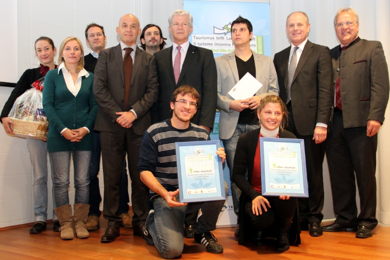 Zum zweiten Mal ist heuer der Ideenwettbewerb "Tourismus trifft Landwirtschaft" ausgeschrieben worden, allerdings mit einer großen Neuerung im Vergleich zur ersten Auflage 2009: der Preis ist auf die Ebene der Euregio verlagert worden, es konnten also Projekte aus Südtirol, dem Bundesland Tirol und dem Trentino eingereicht werden. Die Ausweitung auf die gesamte Euregio habe sich als durchschlagender Erfolg erwiesen, so Landesrat Hans Berger, der in der Landesregierung sowohl für den Tourismus als auch für die Landwirtschaft verantwortlich ist. Berger: „Bei der ersten Auflage sind 70 Projekte eingegangen, heuer waren es 102. Alleine diese Zahl ist Ausdruck für den Erfolg dieser Initiative. Die 102 eingereichten Projekte sind konkrete Maßnahmen und Vorschläge zur besseren Vernetzung der beiden wichtigsten Wirtschaftszweige in unserem Land und in der gesamten Europaregion. Es genügt nicht nur über Regionalität und Zusammenarbeit zu reden, man muss auch Taten setzen, wie es die 102 Teilnehmer am Wettbewerb vorgemacht haben." Auch der Trentiner Landesrat Mellarini betonte die Bedeutung der Zusammenarbeit: „Wenn wir konkurrenzfähig bleiben wollen, dann ist die Zusammenarbeit auf allen Ebenen der einzige Weg." Hermann Gahr, der in Vertretung des Landes Tirol an der Preisverleihung teilnahm, verwies ebenfalls auf Gemeinsamkeiten: „Dieser Wettbewerb ist ein wichtiger Impuls, besonders weil er auf die Verzahnung von Tourismus und Landwirtschaft setzt, die in allen drei Ländern der Europaregion enorm wichtige Standbeine der Wirtschaft sind."