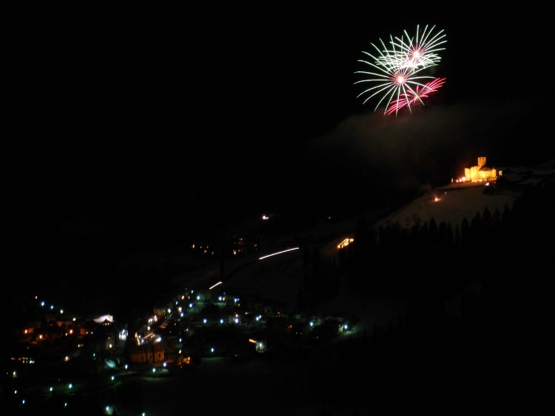 Ab 21.30 Uhr spielt die Böhmische von St. Martin in Thurn im Museum Ladin im Schloss und Schlossgarten. Glühwein und Kekse werden gereicht. Zeitgleich um 21.30 Uhr beginnt auf der Piculin-Piste, die vom Schloss aus zu sehen ist, ein Fackelzug mit abschließendem Feuerwerk. Gegen 22 Uhr werden dann Preise verlost. Das Fest endet um die Mitternachtsstunde.