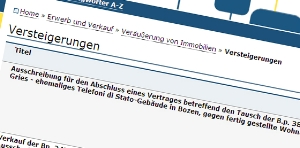 Versteigert wird demnach das ehemalige "Telefoni di Stato"-Gebäude in der Italienallee in Bozen, das das Land vor Jahren von der Post übernommen hatte und ursprünglich selbst in Wohnungen umwandeln wollte. Das Wohnbauinstitut hatte das Gebäude dafür allerdings für ungeeignet befunden, die Umbauarbeiten wären überaus aufwändig gewesen. "Wir haben uns daher für einen Tausch entschieden, weil wir so die Wohnungen umgehend für jene Familien übernehmen könnten, die darauf warten", hatte Landeshauptmann Luis Durnwalder Anfang Oktober die Entscheidung der Landesregierung für die Versteigerung der etwas anderen Art begründet.