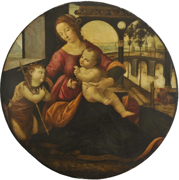 Zur zweiten Vorstellung des "Kunstwerks des Monats" lädt das Museum am Dienstag, 7. Mai, um 16 Uhr. Präsentiert wird dabei das Kunstwerk des Monats Mai, nämlich ein Renaissance-Tondo mit Madonna, Jesuskind und Johannesknabe. Das in Privatbesitz befindliche Gemälde zeigt Maria, die mit der Linken das auf ihrem Schoß sitzende Jesuskind hält und die Rechte um die Schulter des seitlich vor ihr knienden Johannesknaben legt. Die Szene spielt sich vor einer offenen Loggia ab mit Blick auf einen Fluss und eine angedeutete Stadt im Hintergrund. Es handelt sich um ein typisches Beispiel eines häuslichen Andachtsbildes aus der florentinischen Renaissance des späten 15. Jahrhunderts. Auch wenn sich die Zuschreibung des Gemäldes an David Ghirlandaio, den jüngeren Bruder des bekannten Domenico Ghirlandaio, stilkritisch nicht bestätigen lässt, so entspricht es doch der umfangreichen Tätigkeit auf dem Gebiet der Madonnenbilder im weiteren Umkreis der Ghirlandaio-Schule.
