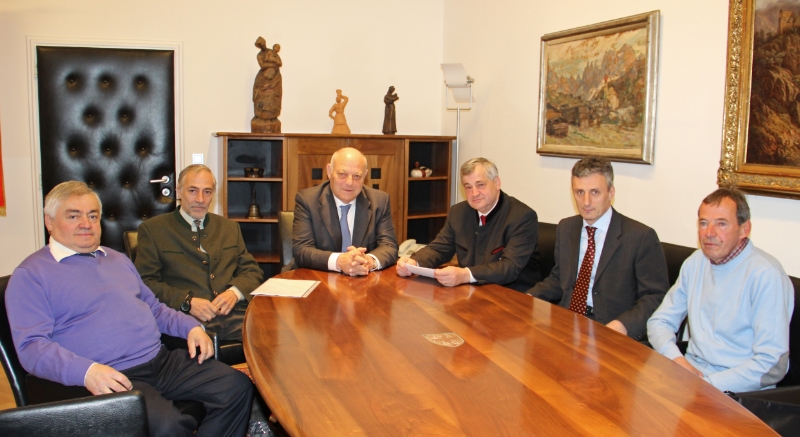 Die Delegation, die von Landeshauptmann Luis Durnwalder und Florian Mussner empfangen wurde, setzte sich aus hochrangigen Vertretern der drei Gemeinden zusammen: dem Bürgermeister von Buchenstein, Ugo Ruaz, dem Buchensteiner Gemeinderat Ilario Dariz, dem Gemeindereferenten Stefano Verocai aus Cortina und dem Vizebürgermeister von Colle Santa Lucia, Paolo Frena.