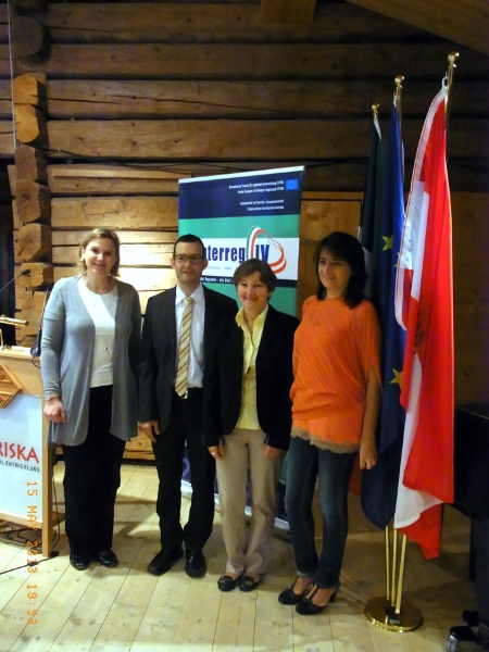 Die Interreg IV Jahresversammlung in Neukirchen mit v. l. Alexandra Deimel (Österreich), Peter Gamper (Verwaltungsausschuss-Vorsitzender), Gudrun Schick (Salzburg), Marilena Barbaro (Italien)