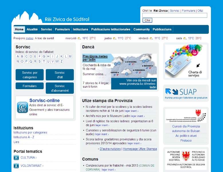 Am 5. Dezember 2012 ist das ladinische Bürgernetz auf http://www.provinzia.bz.it/ online gegangen und seither sind die Besucherzahlen kontinuierlich gestiegen. „Das Interesse an den ladinischen Seiten im Bürgernetz wächst und ist Beweis dafür, dass wir mit den neuen Medien die öffentliche Verwaltung noch näher zur Bevölkerung der ladinischen Täler bringen können", glaubt Landesrat Mussner.