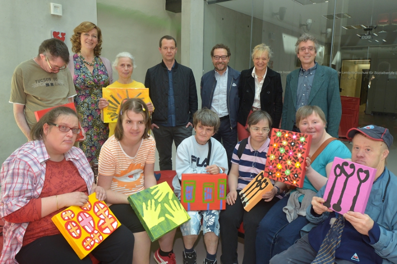 „Das Kunstprojekt war in vieler Weise bereichernd: Für die Menschen mit Behinderung, weil sie klaren Auftrag bekommen haben, und weil ihre Arbeit wertvoll ist und geschätzt wird sowie für die Schule, die nun Kunstwerkwerke zur Verfügung hat", unterstrich Landesrätin Kasslatter Mur. Der Direktor der Sozialdienste der Bezirksgemeinschaft Salten Schlern Günther Staffler verglich die Bilder mit Blumen im Knopfloch eines Anzugs. Angetan von den Kunstwerken zeigten sich auch die Schüler der Fachschule, die auf die besondere Kreativität und Euphorie verwiesen, mit denen die Künstler ihre Werke gestaltet haben. Die Leiterin der Geschützten Werkstatt Kimm Ruth Jamnik stellte die verschiedenen Künstler und ihre Werke kurz vor.
