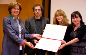 LPA - Die aus Tirol stammenden und in Wien lebenden Kunstschaffenden Johanna Tinzl und Stefan Flunger wurden heute (29. Juni) im Rathaus von Glurns von den Kulturlandesrätinnen Sabina Kasslatter Mur und Beate Palfrader mit dem Paul-Flora-Preis 2013 ausgezeichnet. Erstmals wurde der Preis am Geburtstag Paul Floras verliehen.