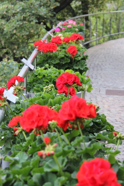 Die Pelargonien sind allgemein unter dem Namen „Geranien" oder im Volksmund auch als „Brennende Liab" bekannt. Hundert verschiedene Sorten davon blühen derzeit entlang der Sissi-Promenade in den Gärten von Schloss Trauttmansdorff. Hier zeigt sich die wohl typischste aller Balkonpflanzen in unterschiedlichsten und seltenen Farbnuancen.