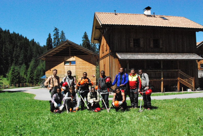 LPA - Acht ursprünglich aus Nigeria und Guinea stammende Flüchtlinge besuchten vom 29. Juli bis zum 2. August in der Forstschule Latemar einen Freischneider-Kurs. Er wurde in Zusammenarbeit mit dem Caritas-Flüchtlinghaus "Arnika" in Meran organisiert, wo die Flüchtlinge zuletzt beherbergt waren.