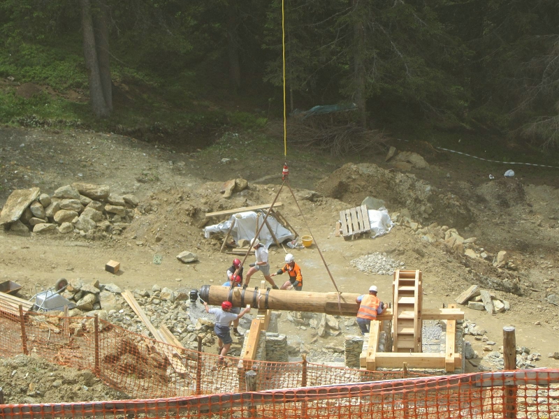 Auch das auf dem Knappensteig einst gelegene Pochwerk wurde jetzt im Rahmen des EU-Projektes „Grenzwege" völlig neu errichtet. Dabei arbeitete das Südtiroler Bergbaumuseum mit der Gemeinde Prettau zusammen, unter der Leitung von Forstrat Wolfgang Weger und Amtsdirektor Sylvester Regele.