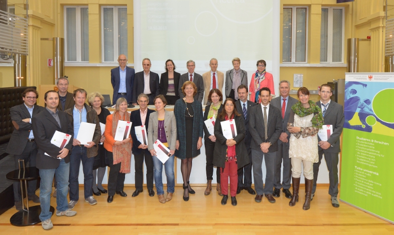 Von den 16 Projekten, für die heute im Bozner Palais Widmann der Fördervertrag übergeben wurde, sind neun an der Universität Innsbruck angesiedelt, drei an der Freien Universität Bozen, zwei an der Europäischen Akademie, einer an der Fachhochschule für Gesundheitsberufe und eines bei der Michael-Gaismair-Gesellschaft.