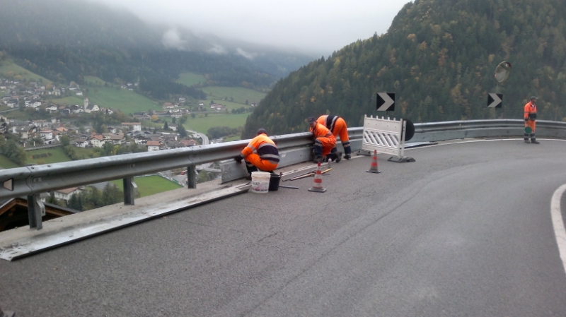 "In den letzten drei Jahren haben wir zwölf Kilometer Leitplanken ausgetauscht und über 15 Kilometer neue angebracht. Vor allem auf den Passstraßen sind diese zudem mit einem Unterfahrschutz für Motorräder ausgestattet worden, der sich bereits mehrfach bewährt hat", so der Bautenlandesrat zur "Leitplanken-Offensive" des Landesstraßendienstes. Die Investition in die Leitplanken und die (bauliche) Entschärfung der gefährlichsten Straßenabschnitte zählt zu den Schwerpunkten des Straßendienstes bei der Erhöhung der Verkehrssicherheit.