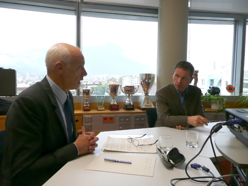 Roberto Bertoldi wurde von drei Mitarbeitern - Gianfranco Cesarini Sforza, Vittorio Cristofori und Fabio Mariz - begleitet. Am Treffen im Zivilschutzturm nahmen von Südtiroler Seite Amtsdirektor Günther Walcher und Irene Hell teil. Harald Pircher führte die Trentiner Kollegen durch die Landesnotrufzentrale und die Verkehrsmeldezentrale. Den neuen Zubau des Zivilschutzzentrums, dem Sitz des Hydrographischen Landesamtes und des Landeswarnzentrums, stellte Projektsteurer Andreas Simmerle den Gästen aus der Nachbarprovinz vor.