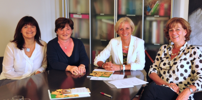 Landesrätin Kasslatter Mur trifft Katholische Frauenbewegung, v.l. Ulrike Huber (stellv. Vorsitzende), Christine Vieider (Geschäftsführerin), Rosmarie Karbon (Vorsitzende), LRin Sabina Kasslatter Mur