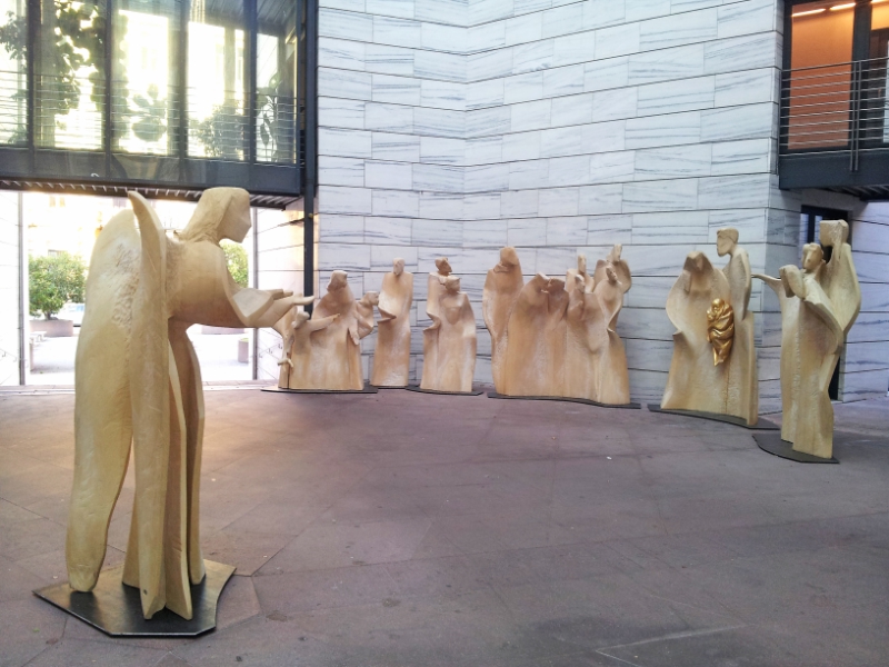 LPA - Eine besondere Krippe können Südtiroler und Gäste nun vor dem Landhaus II in Bozen in Bozen bestaunen: Gegenüber des Bozner Bahnhofs, vor dem Amtssitz von Ladinerlandesrat Florian Mussner ist eine lebensgroße Krippe zweier Grödner Kunsthandwerker aufgebaut.