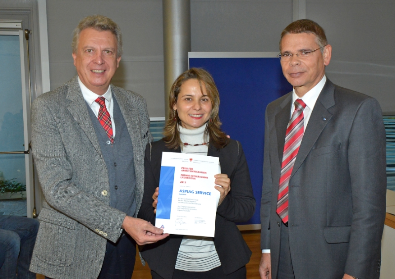 Preis für Arbeitsintegration 2013 geht an Aspiag Service GmbH, Bozen