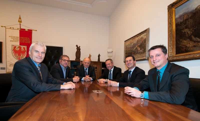 Landeshauptmann Durnwalder, der neue Gemeindenpräsident Andreas Schatzer sowie die Bezirkspräsidenten Alois Kröll, Albin Kofler, Peter Gasser und Armin Holzer haben heute im Palais Widmann die jüngsten Etappen der Zusammenarbeit zwischen Land, Gemeinden und Bezirksgemeinschaften Revue passieren lassen: den Ausbau der Kleinkinderbetreuungsstätten, der Sozial- und Bildungseinrichtungen sowie des Radwegenetzes, die Verlegung des landesweiten Glasfasernetzes, die energetische Sanierung der öffentlichen Gebäude, aber auch die Maßnahmen gegen die Landflucht in den abwanderungsgefährdeten Gebieten oder „Dauerbrenner" wie die Versorgung der Peripherie mit allen wichtigen öffentlichen Dienstleistungen und die Form der Gemeindenfinanzierung.