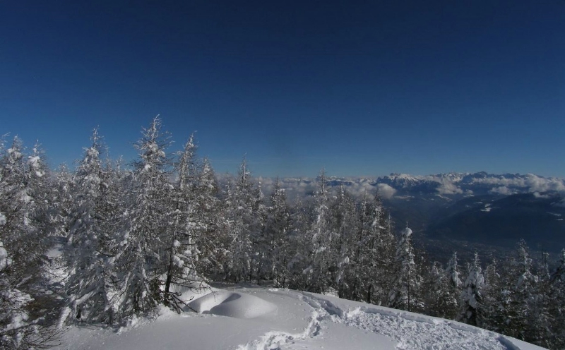 Rekordschneemengen verzeichnet der Landeswetterdienst: Im Bild die Wetterstation Gantkofel mit Blickrichtung Bozen-Schlern; die Spuren stammen von den Mitarbeitern des Funkdienstes, die heute (6. Februar) zu Wartungszwecken dort waren.