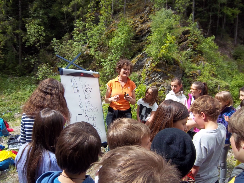 Mit Experten der Landesabteilung Wasserschutzbauten haben die Schülerinnen und Schülern zunächst gesammelte Zeitungsartikel über Naturereignisse in der Klasse besprochen und das Thema Naturgefahren anhand von Fotos und Filmen veranschaulicht; anschließend erkärte Philipp Walder vom Landesamt für Wildbach- und Lawinenverbauung Nord unterschiedliche Schutzkonzepte, und zwar den Schutz durch technische Schutzbauwerke und jenen durch Gefahrenzonenplanung.