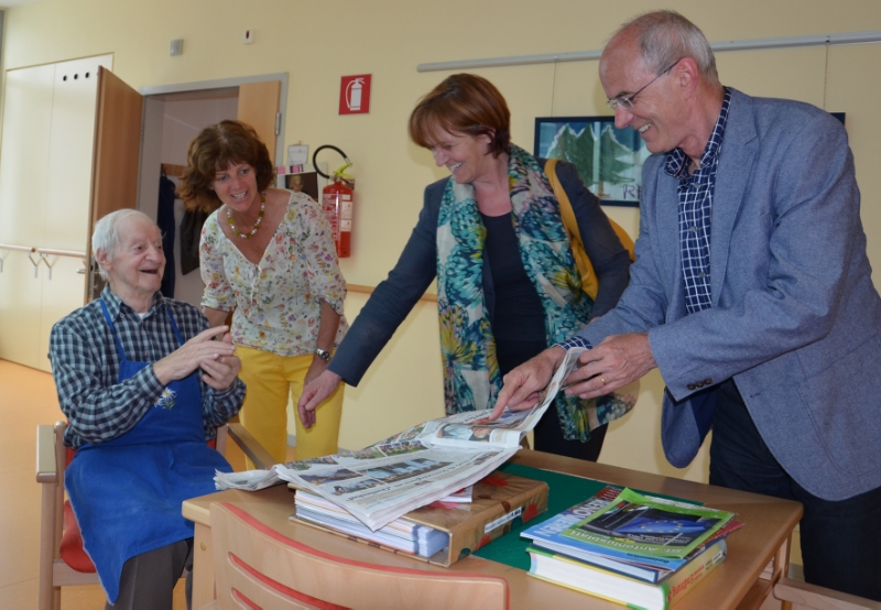 Bei einem Rundgang machte sich Stocker ein Bild von der Arbeit im Seniorenheim. Beeindruckt zeigte sich die Landesrätin von der guten Anbindung des Heims an das Dorf und der damit einhergehenden Integration der Heimbewohner ins Dorfleben. Möglich wird diese durch ein Cafe mit Terrasse, dass sowohl für die Heimbewohner als auch für alle anderen Bürger zugänglich ist.