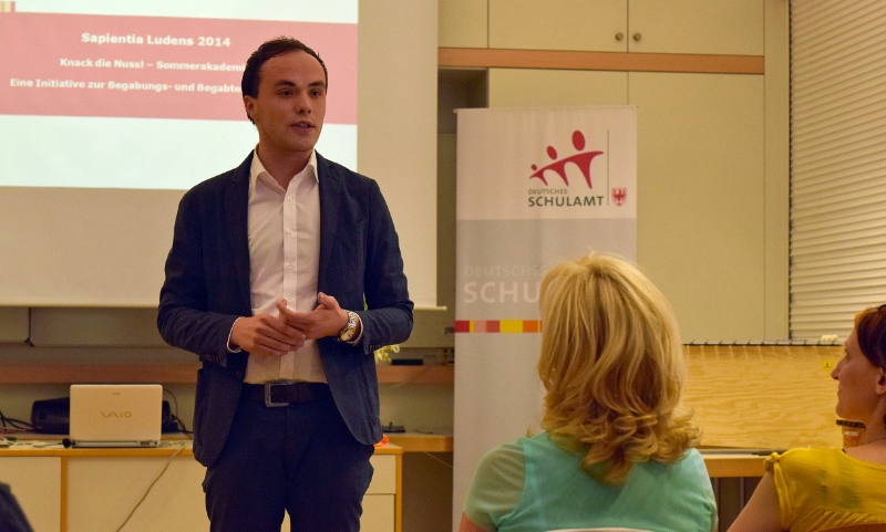 Mit den Präsentationen der Oberschüler und einer kleinen Feier endete heute, 25. Juli, für dieses Jahr die Sommerakademie „Sapientia ludens 2014". Mit dabei waren Bildungslandesrat Philipp Achammer und der Leiter der Fachstelle für Inklusion und Gesundheitsförderung am Deutschen Schulamt, Franz Lemayr. Das Motto der Sommerakademie, bei der auch heuer wieder rund 200 Kinder und Jugendliche aus allen Schulstufen teilgenommen haben, lautet „Engagement, Kreativität und Spaß".