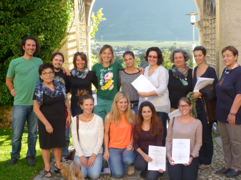 Der ESF-Lehrgang "Spiele und Sprachen er-leben. Kreative Sprachförderung in der Freizeit" fand am Wochenende auf Schloss Goldrain seinen Abschluss. 14 Teilnehmer des Lehrgangs haben ihre Diplome erhalten und sind nun gerüstet für die sprachfördernde Freizeitgestaltung.